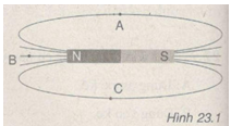 Hãy vẽ kim nam châm nằm cân bằng ở các vị trí A, B, C trong từ trường của thanh nam châm thẳng (Hình 23.1)