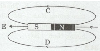 Hình 23.2 cho biết một số đường sức từ của thanh nam châm thẳng. Hãy dùng mũi tên chỉ chiều đường sức từ tại các điểm C, D, E và ghi tên từ cực của nam châm.