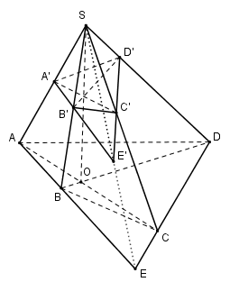 Cho hình chóp S.ABCD. Gọi \(O=AC\cap BD.\) Một mặt phẳng \(\left( \alpha \right)\) cắt SA, SB, SC, SD tại A’, B’, C’, D’. Giả sử \(AB\cap CD=E,A'B'\cap C'D'=E'.\) Tìm phát biểu đúng trong các phát biểu sau: