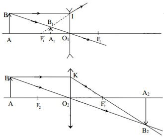 b. Tìm tiêu cự của hai thấu kính và chiều cao của vật AB.