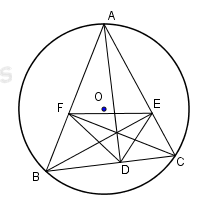 Cho tam giác nhọn ABC nội tiếp đường tròn (O) các đường cao \(AD,\,BE,\,CF\,\left( {D \in BC,\,E