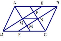 Cho hình bình hành ABCD có AB = a, BC = b (a>b). Các phân giác trong của các góc A, B, C, D tạo thành tứ giác MNPQ.
