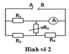 Cho mạch điện như hình vẽ 2. Biết R1 = 12Ω, R2 = 9Ω,R3 là một biến trở, R4 = 6Ω. Đặt vào