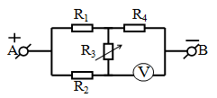 R3 là biến trở, điện trở của vôn kế rất lớn. Bỏ qua điện trở dây nối.