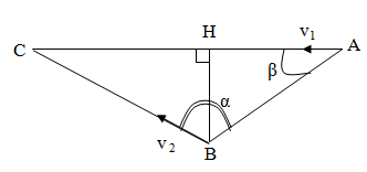 Lúc 6 giờ, một xe buýt chuyển động thẳng đều qua điểm A theo hướng AH với vận tốc v1 = 18 km/h và một học sinh chuyển động thẳng đều qua điểm B với vận tốc v2 để đón xe đi thi vào lớp 10 THPT chuyên Thái Bình. Biết BH = 40 m, AB = 80 m (Hình vẽ 1).