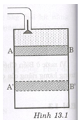 Hơi nước có áp suất không đổi là p = 6.105N/m2 được dẫn qua van vào trong xilanh và đẩy píttông chuyển động từ vị trí AB đến vị trí A’B’ (H.13.1). Thể tích của xilanh nằm giữa hai vị trí AB và A’B’ của píttông là V = 15dm3. Biết rằng công của hơi sinh ra bằng tích của p và V. Tính công của hơi nước ra J.