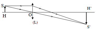 1. Một điểm sáng S qua thấu kính cho ảnh thật S’. Gọi khoảng cách từ S đến thấu kính là d; từ S’ đến thấu kính là d’. Chứng minh công thức .