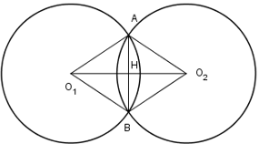 Tính diện tích \({S_1},\,{S_2},\,{S_3}\) của các hình quạt \(A{O_2}B,\,A{O_1}B\) và của tứ giác \(A{O_1}B{O_2}.\) Khi đó \(S = \frac{{{S_1} + {S_2} - {S_3}}}{2}\)