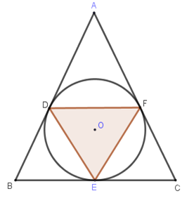 Cho tam giác \(ABC\,\left( {AB = AC} \right).\) Cạnh \(AB,\,\,BC,\,\,CA\) tiếp xúc với đường tròn \(\left( O \right)\) tại các điểm \(D,\,E,\,F.\) Khi đó \(\Delta DEF\) :