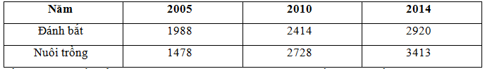 Sản lượng thủy sản đánh bắt và nuôi trồng của nước ta giai đoạn 2005 - 2014
