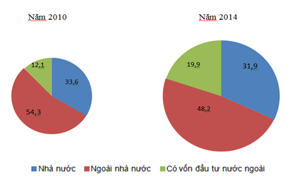 Cơ cấu GDP phân theo thành phần kinh tế của nước ta năm 2010 và 2014 (%)