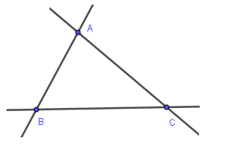 Quan sát hình vẽ ta thấy 3 điểm A, B, C không thẳng hàng. Ta có các cặp điểm là A và B, B và C, A và C. Với mỗi cặp điểm ta vẽ được một đường thẳng.