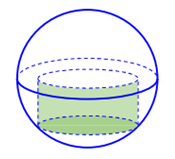 Một công ty mỹ phẩm chuẩn bị ra một mẫu sản phẩm dưỡng da mới mang tên Ngọc Trai với thiết kể một khối cầu như viên ngọc trai, bên trong là một khối trụ nằm trong nửa khối cầu để đựng kem dưỡng như hình vẽ. Theo dự kiến, nhà sản xuất có dự định để khối cầu có bán kính là \(R = 3\sqrt 3 \,cm\). Tìm thể tích lớn nhất của khối trụ đựng kem để thể tích thực ghi trên bìa hộp là lớn nhất (với mục đích thu hút khách hàng).