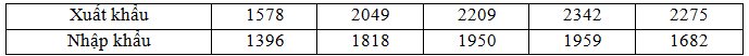 nếu không suy luận logic được thì tính tỉ trọng giá trị xuất khẩu, nhập khẩu theo công thức tính tỉ trọng thành phần trong một tổng để đưa ra kết luận
