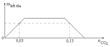 2. Dẫn từ từ khí CO2, vào V ml dung dịch hỗn hợp NaOH 0,2M và Ba(OH)2 0,1M. Đồ thị biểu diễn khối lượng kết tủa theo số mol CO2 như sau: