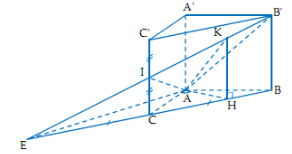 Cho lăng trụ đứng \(ABC.A'B'C'\) có \(AB=AC=BB'=a,\widehat{BAC}={{120}^{\circ }}\). Gọi I là trung điểm