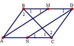 Gọi M, N lần lượt là trung điểm của BD, AC. Chứng minh \(\Delta ABM = \Delta DCN\) và AM = DN.