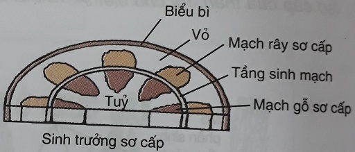 Cắt ngang phần thân non của cây Hai lá mầm có thể phân biệt