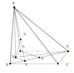 - Kẻ \(MN//AO,MH \bot SN\) và chứng minh \(MH \bot \left( {SBD} \right)\) dựa và định lý: “Nếu một đường thẳng vuông góc với hai đường thẳng cắt nhau thì nó vuông góc với mặt phẳng chứa hai đường thẳng đó”.