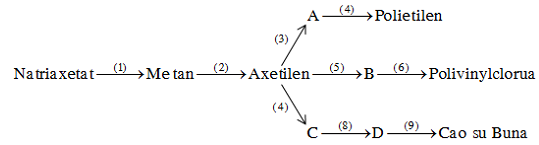 Xác định các chất hữu cơ A, B, C, D và viết phương trình hóa học (ở dạng công thức cấu