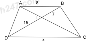 b) Có \(CD = x\, cm,\) tìm giá trị của \(x\) biết \(AB = 8 \,cm,\, IB = 7 \,cm, \,ID = 15 \,cm.\)