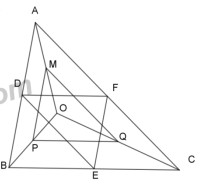 Cho tam giác ba góc nhọn ABC và một điểm O bất kì trong tam giác đó.Ba điểm D, E, F theo thứ tự là trung điểm của các cạnh AB, BC và CA. Ba điểm M, P, Q theo thứ tự là trung điểm của các đoạn thẳng OA, OB và OC. Các tam giác DEF và MPQ có đồng dạng với nhau không? Vì sao? Tỉ số đồng dạng bẳng bao nhiêu? Hãy sắp xếp các đỉnh tương ứng nếu hai tam giác đó đồng dạng.
