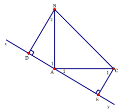 Cho tam giác ABC vuông tại A có AB = AC. Qua A kẻ đường thẳng xy sao cho B, C nằm cùng phía với xy. Kẻ BD và CE vuông góc với xy.