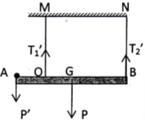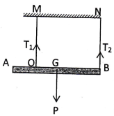 Thanh AB đồng chất, tiết diện đều có chiều dài l và trọng lượng P = 3 (N) được treo bởi hai sợi dây nhẹ không giãn OM và BN như hình vẽ 1. Biết OA = l/4. Khi hệ cân bằng thì thanh AB nằm ngang, còn hai dây treo đều có phương thẳng đứng.