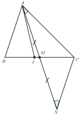 Cho \(\Delta ABC\),\(AB<AC\), M là trung điểm của BC. Trên tia đối của tia MA lấy điểm N sao cho