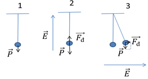 Khi điện trường có phương thẳng đứng: \({T_2} = 2\pi \sqrt {{l \over {g'}}} \) trong đó: \(g' = \left| {g - {{qE} \over m}} \right|\)