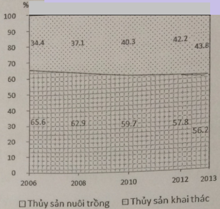 Cho biểu đồ CƠ CẤU SẢN LƯỢNG THỦY SẢN CỦA THẾ GIỚI GIAI ĐOẠN 2006-2013 Nhận xét nào sau