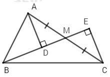 Cho \(\Delta ABC\) vuông tại A, M là trung điểm của AC. Gọi D, E lần lượt là hình chiếu của A