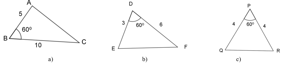- Thấy cặp tam giác nào có tỉ số cặp cạnh của từng tam giác bằng nhau và góc xen giữa cặp cạnh đó bằng nhau thì cặp cạnh đang xét đồng dạng với nhau theo trường hợp cạnh – góc – cạnh.