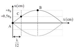 Trên một sợi dây có sóng dừng tần số góc ω = 20 rad/s. A là một nút sóng, điểm B là bụng gần A nhất, điểm C giữa A và B. Khi sợi dây thẳng thì khoảng cách AB = 9 cm và AB = 3AC .Khi sợi dây biến dạng nhiều nhất thì khoảng cách giữa A và C là 5 cm. Tốc độ dao động của điểm B khi li độ của nó có độ lớn bằng biên độ của điểm C là
