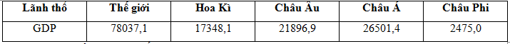Cho bảng số liệu: GDP của Hoa Kì và một số châu lục năm 2014 Năm 2014, GDP của Hoa Kì