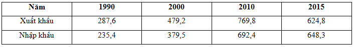 Cho bảng số liệu: Giá trị xuất, nhập khẩu của Nhật Bản từ 1990 – 2015 Biểu đồ thích