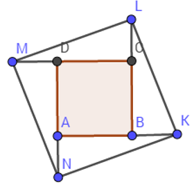 Chứng minh KLMN là hình vuông dựa vào việc xét các cặp tam giác bằng nhau.