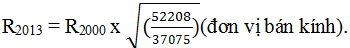 Để vẽ biểu đồ tròn thể hiện qui mô và cơ cấu lao động đang làm việc phân theo ngành kinh tế qua hai năm trên thì bán kính của hai đường tròn sẽ là