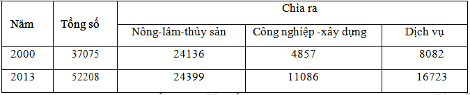 Cơ cấu lao động đang làm việc ở nước ta phân theo ngành năm 2000 và 2013