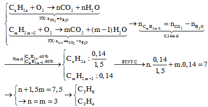 Hỗn hợp gồm 2 hiđrocacbon mạch hở: CnH2n và CmH2m-2.