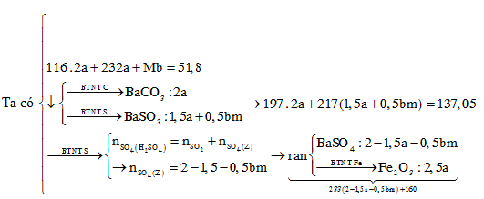 2. Lấy m gam hỗn hợp X ở trên trộn với kim loại M hóa trị không đổi thành 51,8 gam hỗn hợp Y. Hòa tan hoàn toàn Y bằng 200 gam dung dịch H2SO4 98% (có dư) đun nóng thì thu được dung dịch Z và hỗn hợp khí T gồm CO2 và SO2. Cho T phản ứng với dung dịch Ba(OH)2 dư thì thu được 137,05 gam kết tủa. Mặt khác cho Z phản ứng với dung dịch Ba(OH)2 dư rồi lọc lấy kết tủa, rửa sạch nung đến khối lượng không đổi thì thu được 401,15 gam hỗn hợp gồm 2 chất rắn. Xác định tên kim loại M.