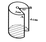 b) Một cái bánh hình trụ có bán kính đường tròn đáy là 3cm, chiều cao 4cm được đặt thẳng đứng trên mặt bàn. Một phần của cái bánh bị cắt rời ra theo các bán kính OA, OB và theo chiều thẳng đứng từ trên xuống dưới với góc AOB = 300 (như hình bên). Tính thể tích phần còn lại của cái bánh sau khi cắt?