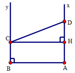 Cho đoạn thẳng AB = 4cm, dựng các tia Ax, By vuông góc với AB, thuộc cùng một nửa mặt phẳng có bờ là đường thẳng AB. Lấy trên Ax một điểm D và trên By một điểm C sao cho BC = 3cm, AD = 6cm.. Độ dài của đoạn thẳng CD sẽ là: