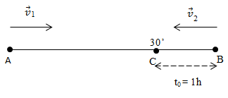 Từ 2 thành phố A và B cách nhau 200km có 2 ô tô cùng khởi hành, chuyển động ngược