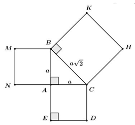 Cho một tam giác vuông cân. Chứng minh rằng tổng diện tích của hai hình vuông dựng trên hai cạnh góc vuông bằng diện tích của hình vuông dựng trên cạnh huyền( không sử dụng định lí Py-ta-go)