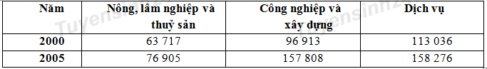Để so sánh giá trị 3 khu vực kinh tế của nước ta trong hai năm 2000 và 2005 thì biểu đồ thích hợp nhất là