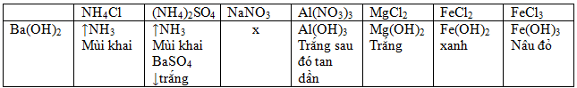 2. Chỉ dùng một thuốc thử, trình bày phương pháp phân biệt các dung dịch riêng biệt: NH4Cl, (NH4)2SO4, NaNO3, Al(NO3)3, MgCl2, FeCl2, FeCl3.