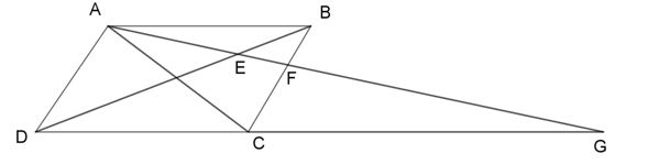 Cho hình bình hành ABCD, điểm F trên cạnh BC. Tia AF cắt BD và DC lần lượt ở E và G. Chứng minh