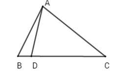 Cho \(\Delta ABC\) , điểm D nằm giữa B và C. Chứng minh: \(AD<\frac{AB+AC+BC}{2}\)
