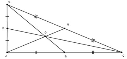 Cho bài toán sau : Cho tam giác ABC vuông tại A có AB = 5cm, BC = 13cm. Ba đường trung tuyến AM, BN, CE